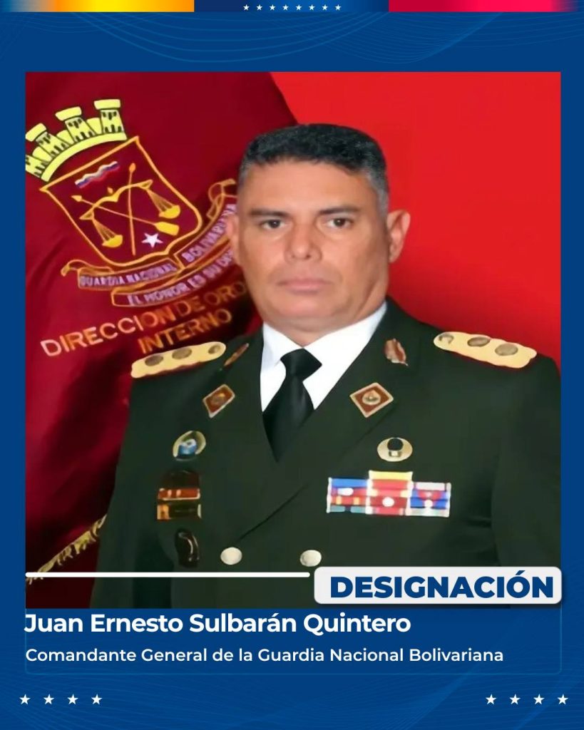 • Comandante general de la Guardia Nacional Bolivariana: Juan Sulbarán