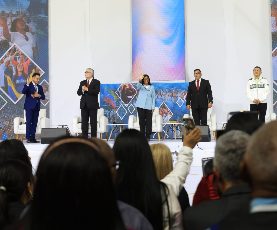 Delcy Rodríguez sostuvo un encuentro con líderes religiosos internacionales, basado en un acto emotivo de «Diplomacia de Fe», segun reseña Prensa Presidencial.