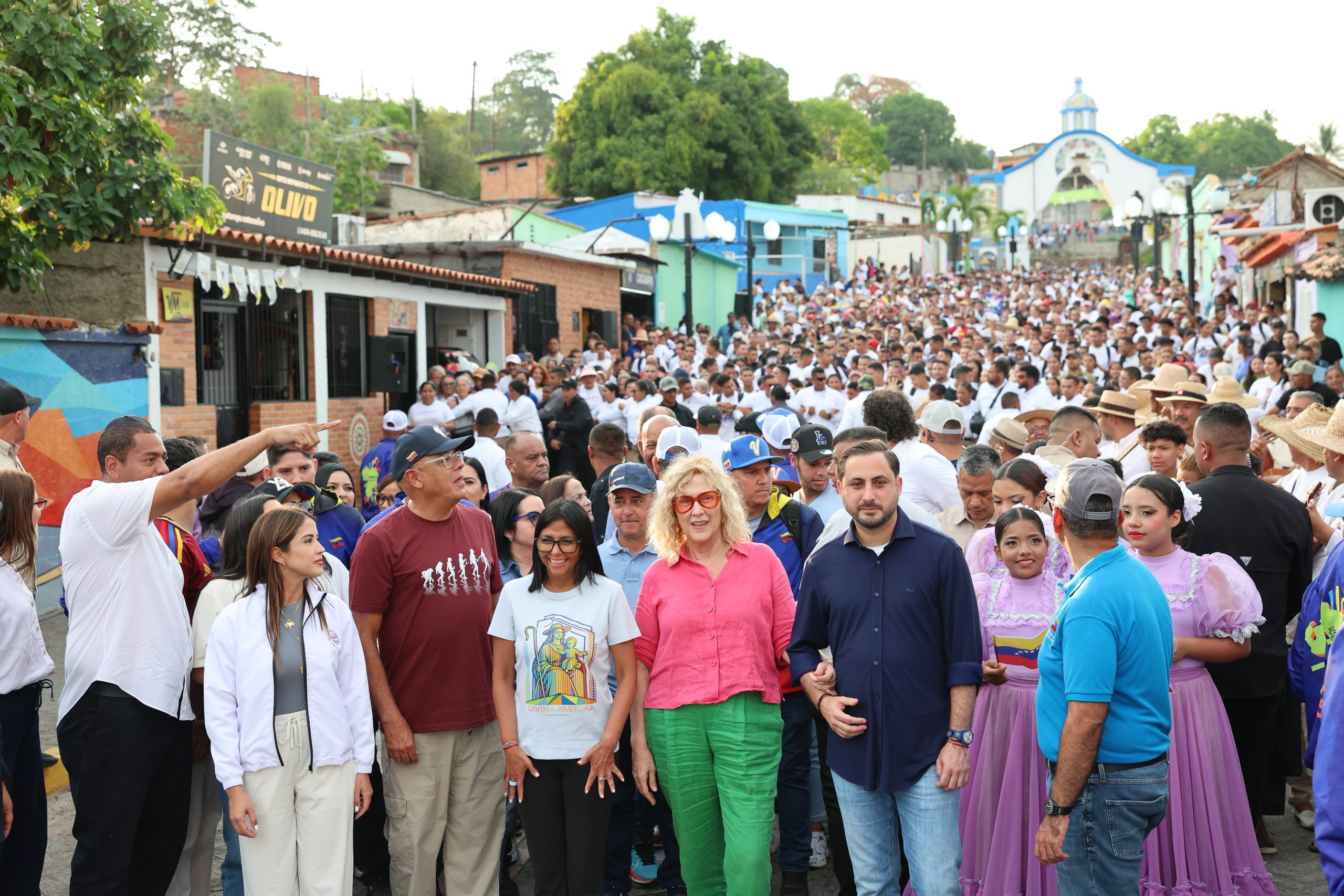 La juramentada presidenta encargada, Delcy Rodriguez, llegó la tarde de este jueves al pueblo de Santa Rosa en el estado Lara donde se encuentra en santuario de la Divina Pastora en el marco de la denomida peregrinación por la paz y sin sanciones.