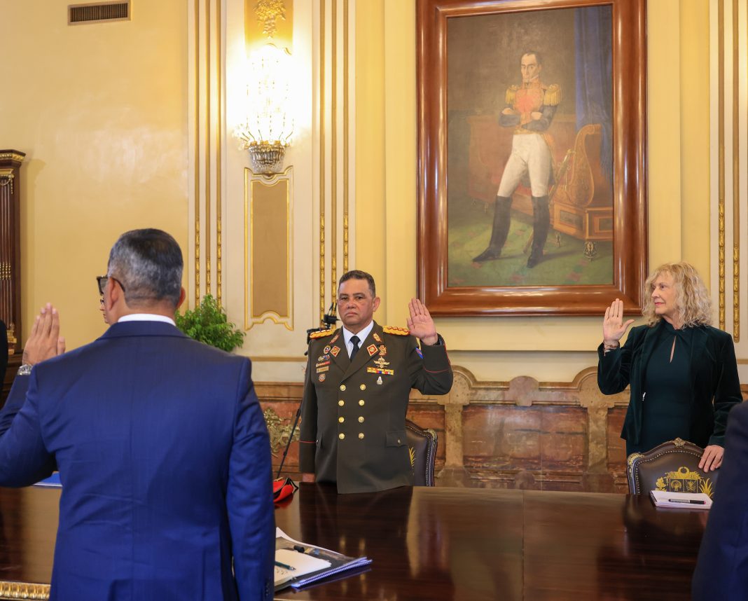 La juramentada presidenta encargada, Delcy Rodríguez, tomó juramento al alto mando militar la tarde de este jueves en el Palacio de Miraflores.