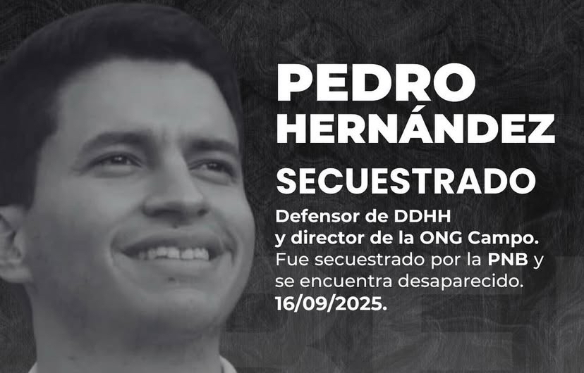 La organización, Realidad Helicoide, denunció que el defensor de derechos humanos, Pedro Hernández, fue secuestrado por efectivos de la Policía Nacional Bolivariana (PNB).
