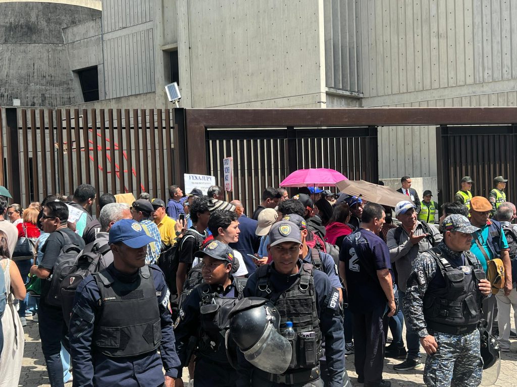 Funcionarios policiales realizaron una cadeneta ante la realización de una actividad por parte del oficialismo en la entrada principal del TSJ.