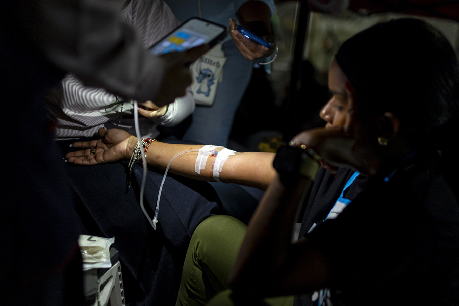 En la noche, esta última recibió suero por vía intravenosa en la colchoneta sobre la que se encuentra, y a varias le midieron la presión arterial.
