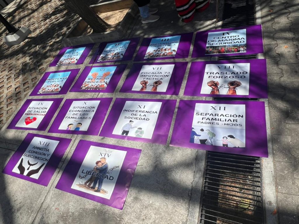 Cita falsa; Dgcim secuestro; Presentación sin defensa; Centro de máxima seguridad; Indefensa pública; Retardo procesal; Fiscalía 73: imputación factica; Traslado forzoso; Situación de salud: emergencias; Situación económica de los trabajadores, fueron los 10 nombres colocadas a estas primeras estaciones del viacrucis.