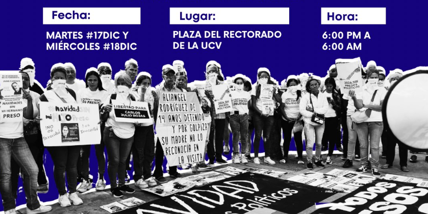 El Comité por la Libertad de los Presos Políticos convocó vigilias para este martes 17 de diciembre y miércoles #18Dic en la Universidad Central de Venezuela (UCV) para pedir por la libertad de los detenidos por motivos políticos que registra la administración de Nicolás Maduro.