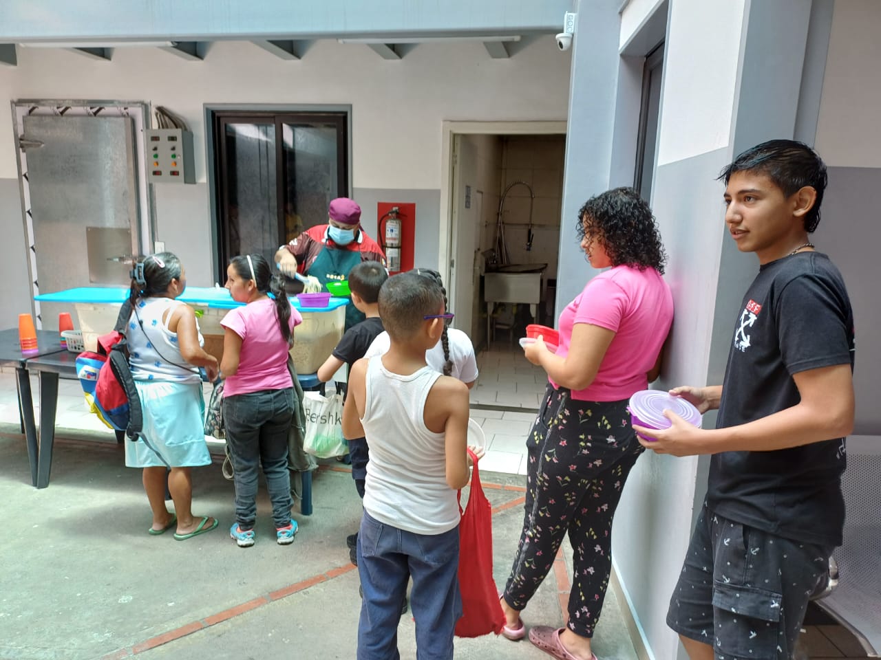 «Aquí se trabaja con amor», explica Elisa. El comedor garantiza un plato de comida para más de 400 niñas y niños, y también se prepara sopa para los domingos. «Se le echa pollo, costilla, verdura. Algunas veces se ha hecho cruzado, porque han donado pescado», relata. Sin dejar de servir alimentos, el chef reflexiona sobre las familias, sobre la vida en el hogar, la necesidad de sembrar valores. «Aquí hacemos labor social los domingos con la sopa: son tres ollas de 100 litros», refiere Euclides, e insiste en los valores.