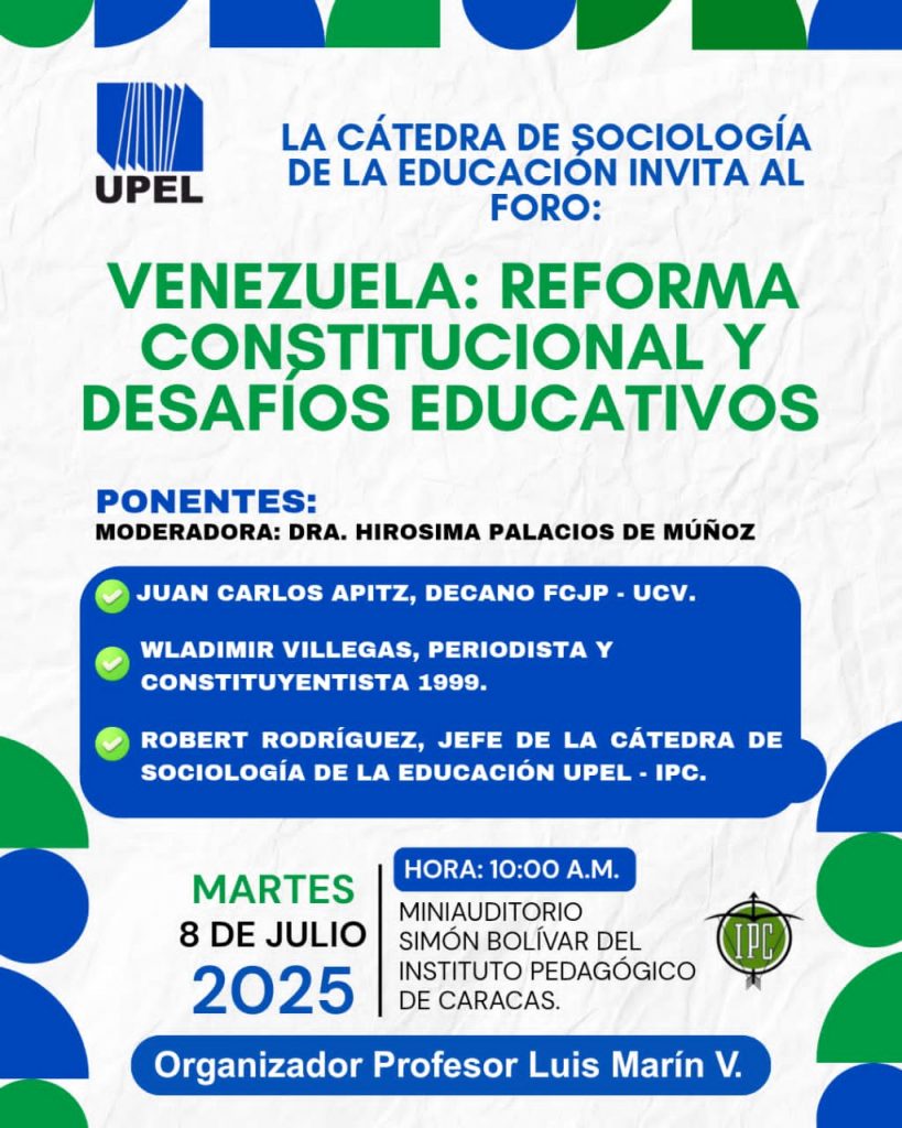 La afirmación la hizo durante el desarrollo del foro Venezuela: Reforma Constitucional y desafíos educativos. Este foro se realizó con la organización de la Cátedra Sociología de la Educación del Instituto Pedagógico de Caracas de la Universidad Pedagógica Experimental Libertador (UPEL).