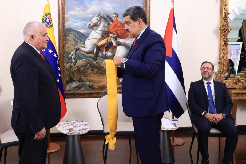 Nicolás Maduro otorgó este martes la «Orden Francisco de Miranda», en su grado «Generalísimo» y Primera Clase, al embajador plenipotenciario de Cuba, Dagoberto Rodríguez Barrera.