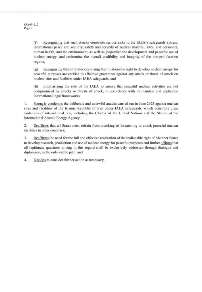 “Es hora de que la comunidad internacional actúe con firmeza para evitar que se normalice la ilegalidad”, concluyó. El director de la Organización de Energía Atómica de Irán, Mohamed Eslami, condenó el lunes en su discurso en la Conferencia General del OIEA los ataques israelí-estadounidenses contra las instalaciones nucleares iraníes como una violación de las normas internacionales.