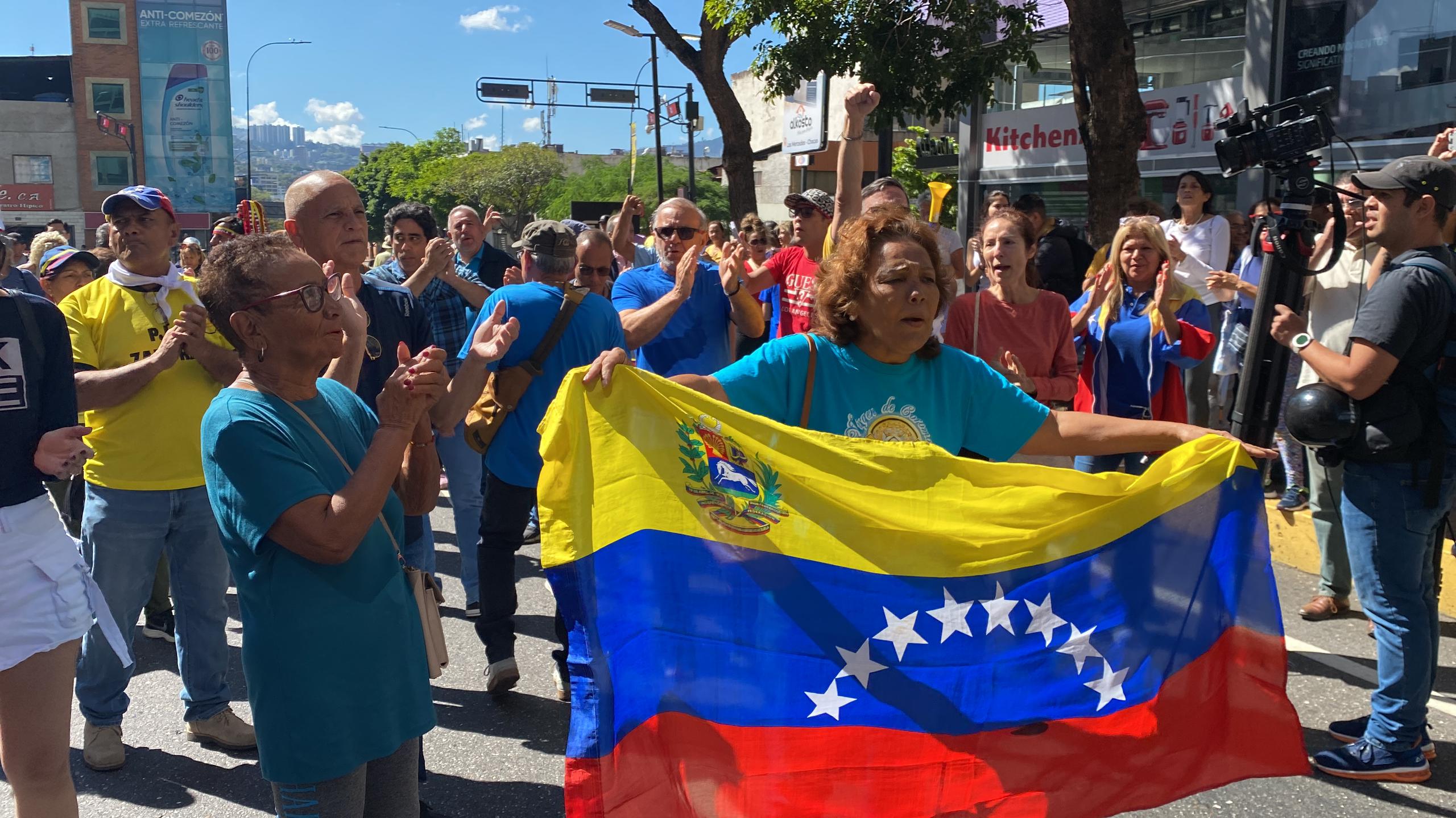 Sin embargo, los opositores se movilizaron una cuadra hacia abajo luego de que el oficialismo instalara una tarima en el cruce de la calle Élice con avenida Francisco de Miranda