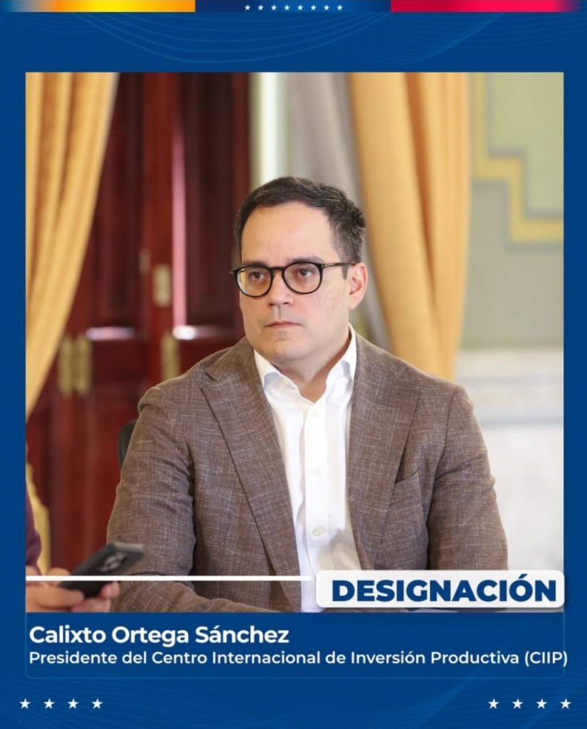 La presidenta encargada de Venezuela, Delcy Rodríguez, anunció este lunes la designación de Calixto Ortega como el nuevo presidente del Centro Internacional de Inversión Productiva, en sustitución de Álex Saab.