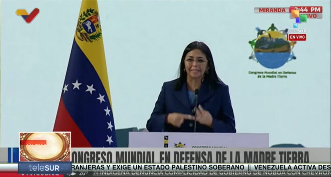 La vicepresidenta de la República, Delcy Rodríguez, participó este viernes 10 de octubre en el Congreso Mundial en Defensa de la Madre Tierra en la que alertó las “cifras alarmantes” que se viven a nivel global sobre el cambio climático.