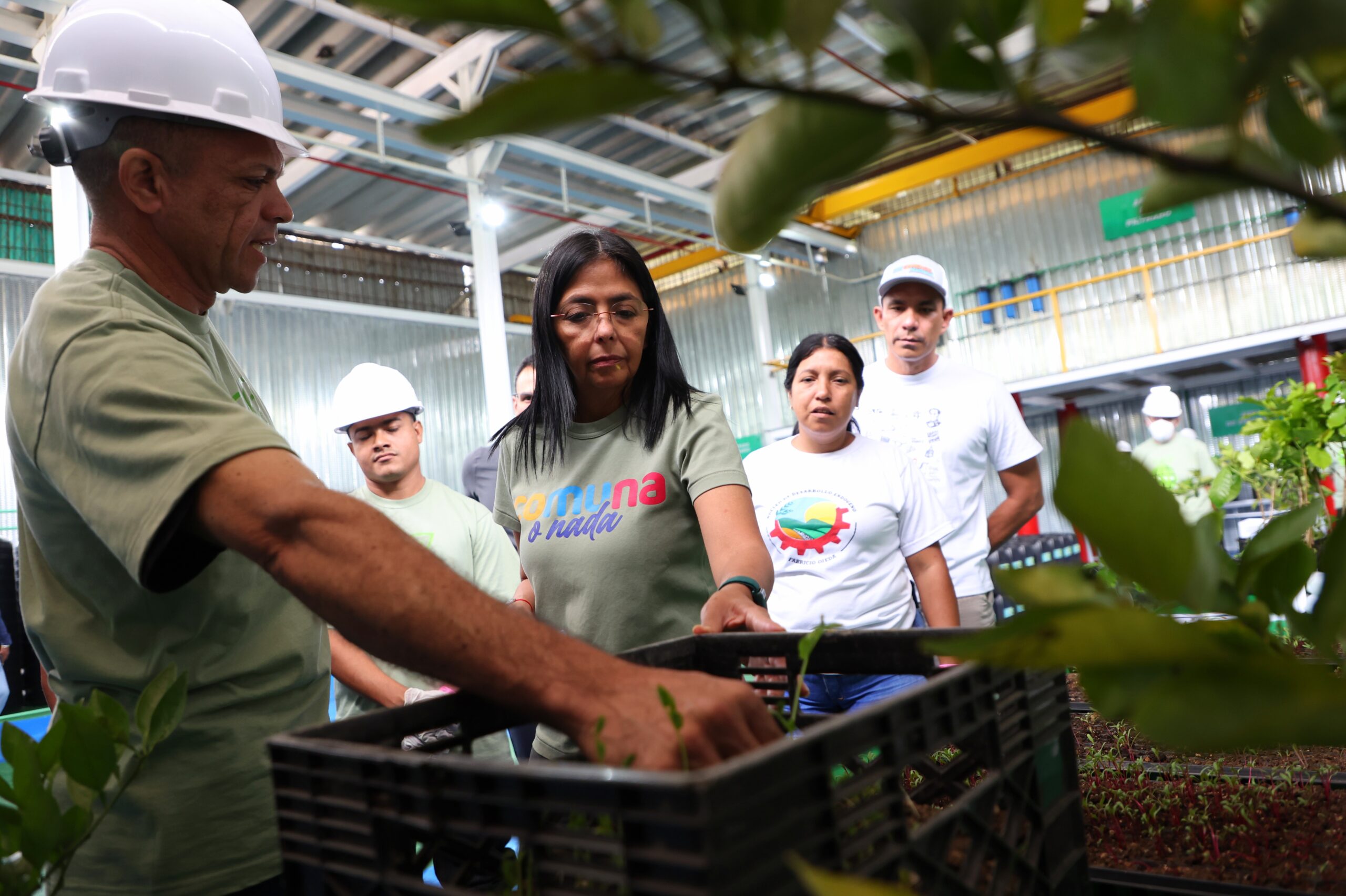Desde el Núcleo de Desarrollo Endógeno «Fabricio Ojeda», la vicepresidenta Rodríguez enfatizó en la economía comunal que se lleva a cabo en la Planta, asegurando que esta lleva la producción de biofertilizantes para el «desarrollo de la agricultura orgánica, para obtener productos orgánicos y que el país coma sano».