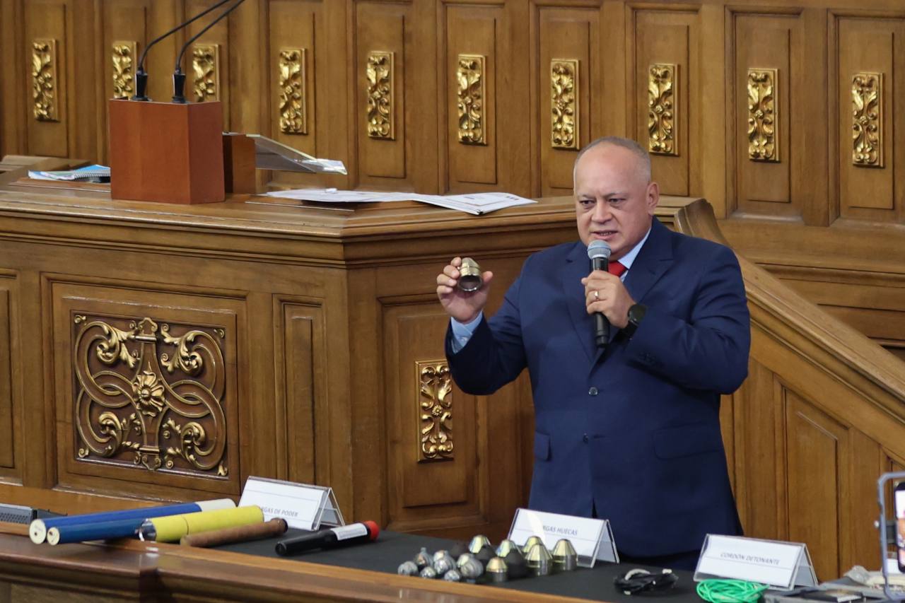 En su intervención frente a la Asamblea Nacional, Diosdado Cabello aseguró que siguen encontrando depósitos de explosivos de gran potencia que, según las investigaciones que realiza su equipo, serían usados para desestabilizar al país.