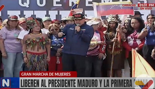 Aplaudió la movilización de las mujeres en las calles para «exigirle» al gobierno de los Estados Unidos que liberen al Jefe de Estado tras el «secuestro». «Maduro, aguanta, el pueblo se levanta», manifestaron los presentes.