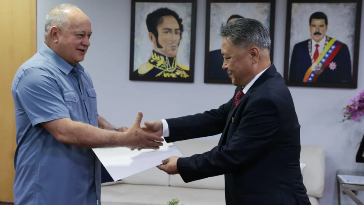El secretario general del Partido Socialista Unido de Venezuela (PSUV), Diosdado Cabello, sostuvo una reunión este miércoles 23 de abril con el encargado de negocios de la embajada de Corea del Norte, Han Song Guk, para fortalecer relaciones en materia política, reseñaron medios oficialistas.