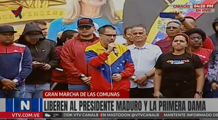 Desde Caracas, el también excanciller pidió a los comuneros confiar en el alto mando político venezolano quienes harán todo lo pertinente para lograr la liberación de Maduro y Flores tras ser capturados la madrugada del sábado luego de una intervención armada estadounidense.