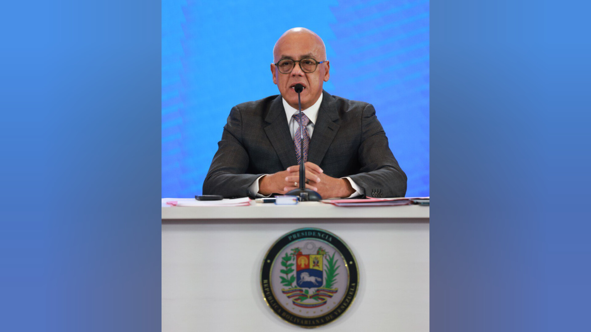 Durante su intervención, Rodríguez criticó a quienes, desde el exterior, “claman e imploran” por una intervención militar contra Venezuela. Hizo hincapié en el repudio a la violencia, contrastando la paz con las «ínfulas guerreristas» que, según él, promueven las grandes corporaciones mediáticas y redes sociales. Mencionó el caso de un artista venezolano que fue «buleado» por usar una camiseta con la frase «Yo vivo en Venezuela y no quiero guerra».