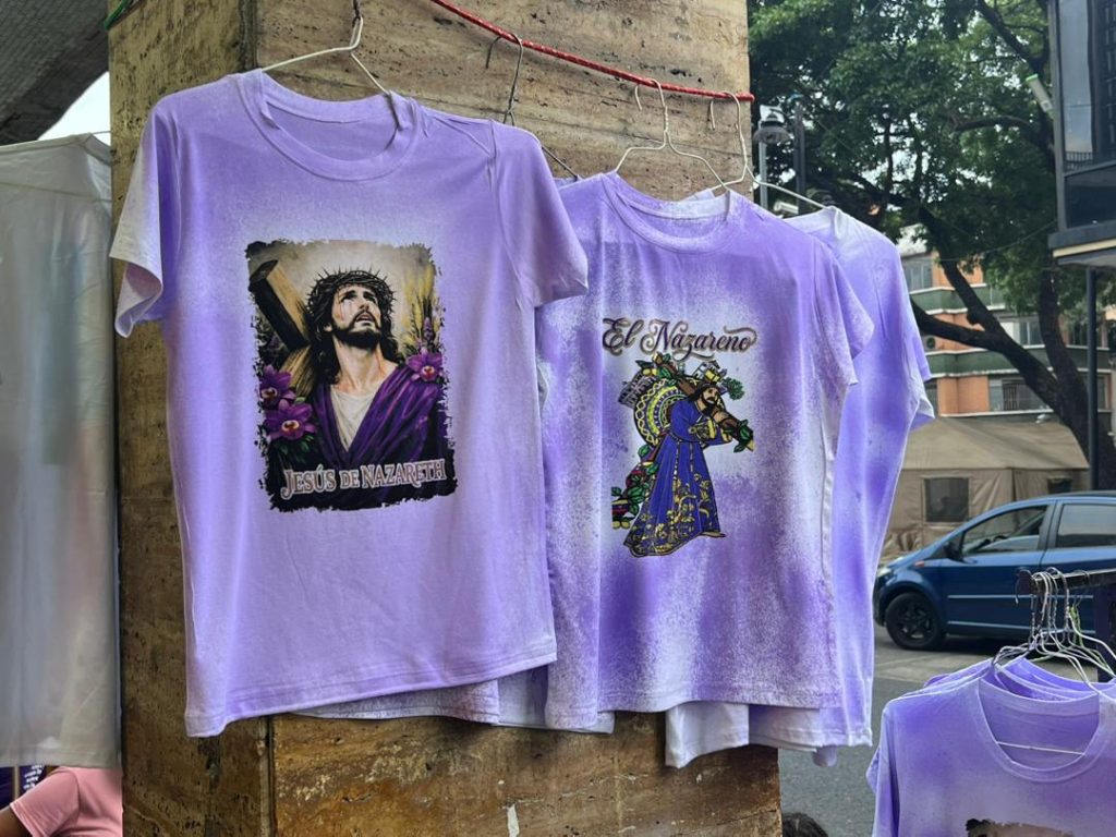 Ramón Urbaneja también tiene más de 20 años comerciando franelas del Nazareno de San Pablo. Oferta las mismas a partir de 2.500 bolívares, diferenciadas por la calidad y tamaño de las mismas.