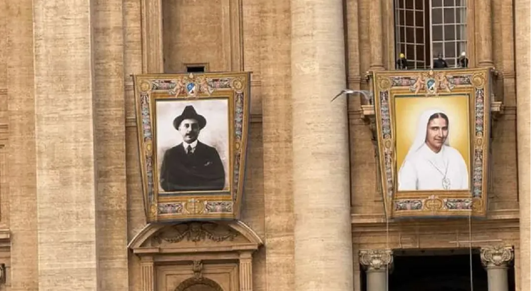 Junto a ellos están las imágenes de los otros santos que serán elevados a los altares: María Troncatti, Vicenta María Poloni, Bartolo Longo, monseñor Ignacio Maloyan y Pedro To Rot son los otros cinco nuevos santos de la iglesia católica.