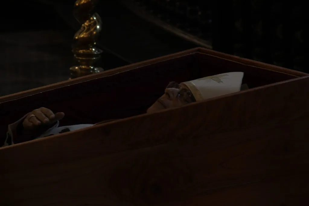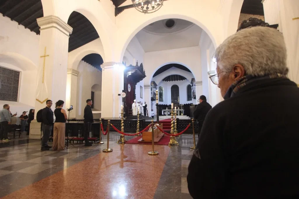 El féretro se encuentra en la nave central, frente al altar.