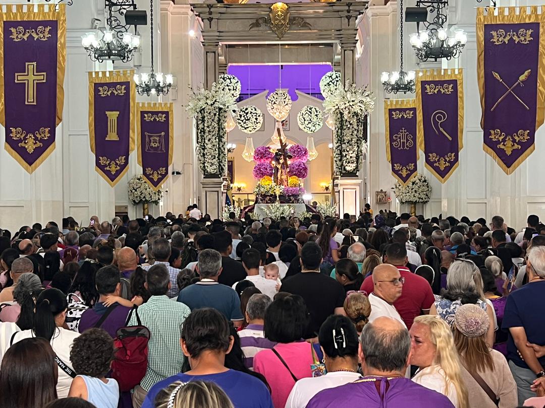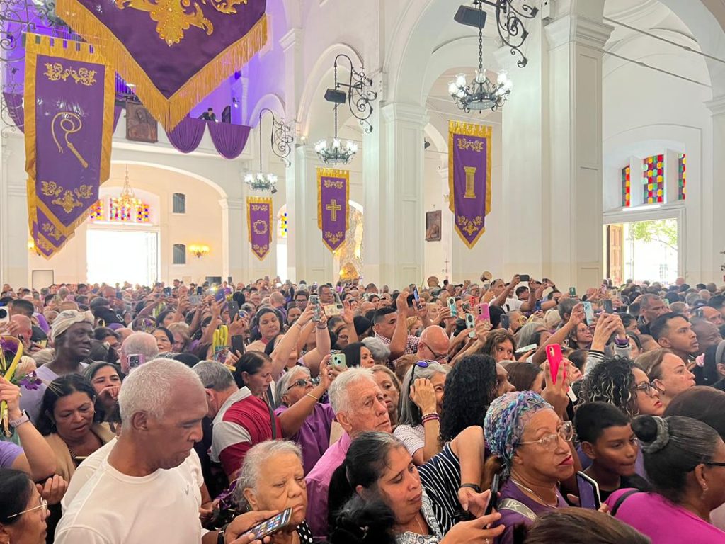 Las inmediaciones de la Basílica de Santa Teresa, en Caracas, se tiñeron de morado. Miles de fieles se congregaron desde tempranas horas de la madrugada de este Miércoles Santo en los alrededores del recinto religioso para rendir devoción al Nazareno de San Pablo y agradecer por los favores recibidos.