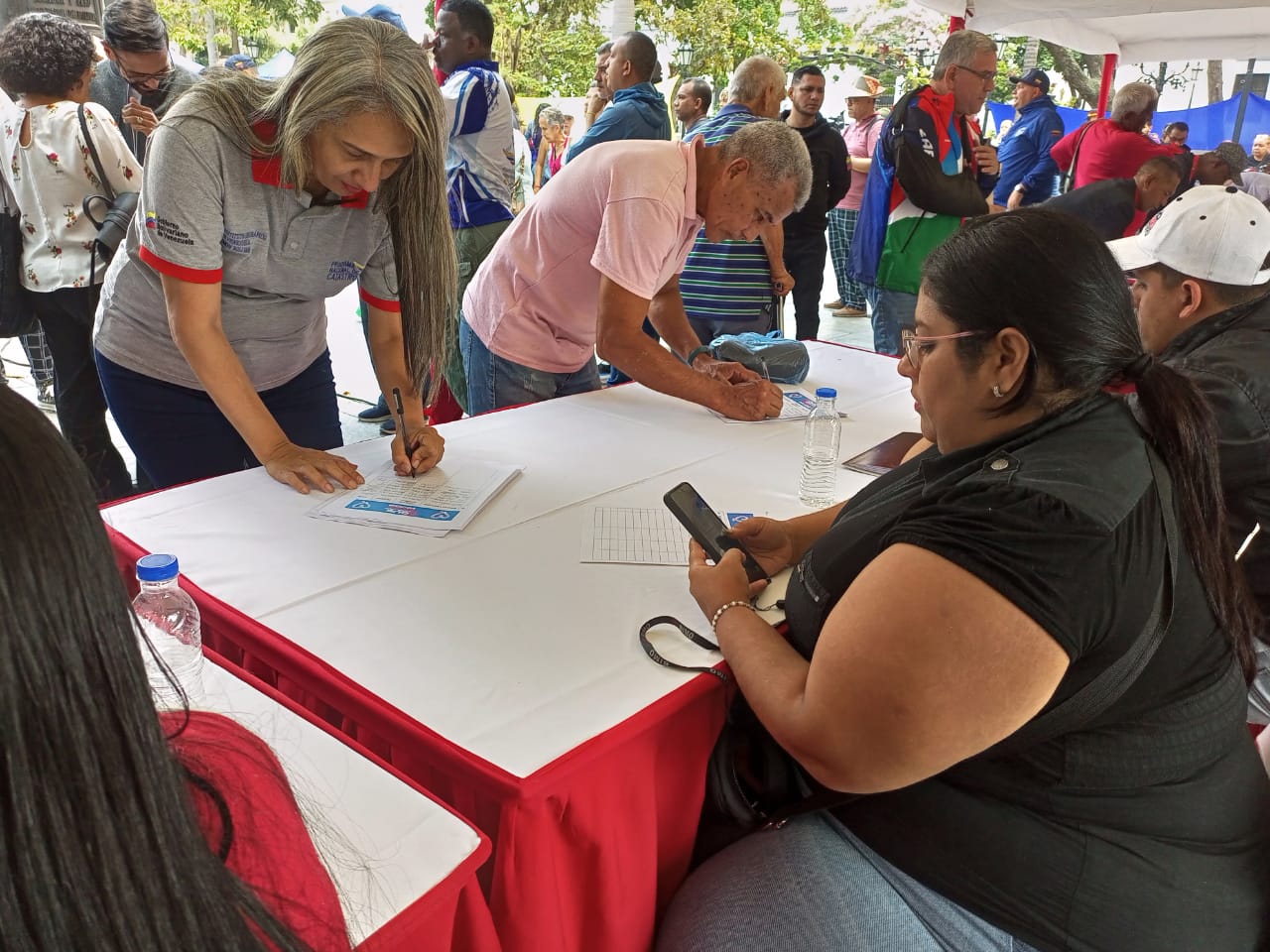 Cientos de personas se personaron a la concurrida Plaza Bolívar de Caracas, ubicada en la parroquia Catedral, para plasmar sus firmas y manifestar su respaldo a los connacionales que son objetos de «ilegales medidas» por parte de los gobiernos estadounidense y salvadoreño.
