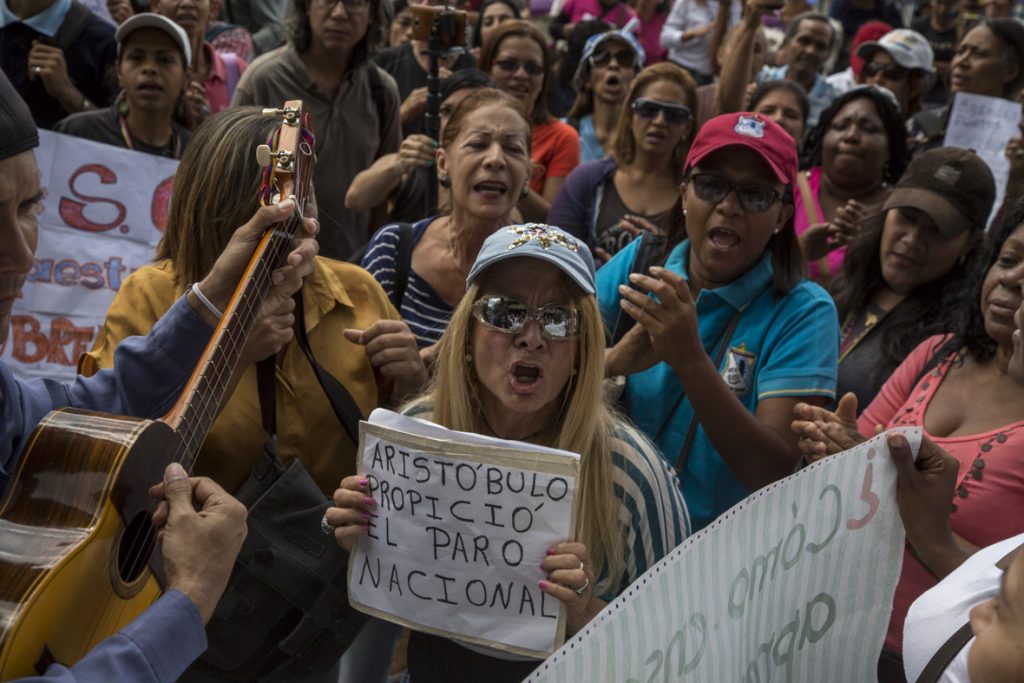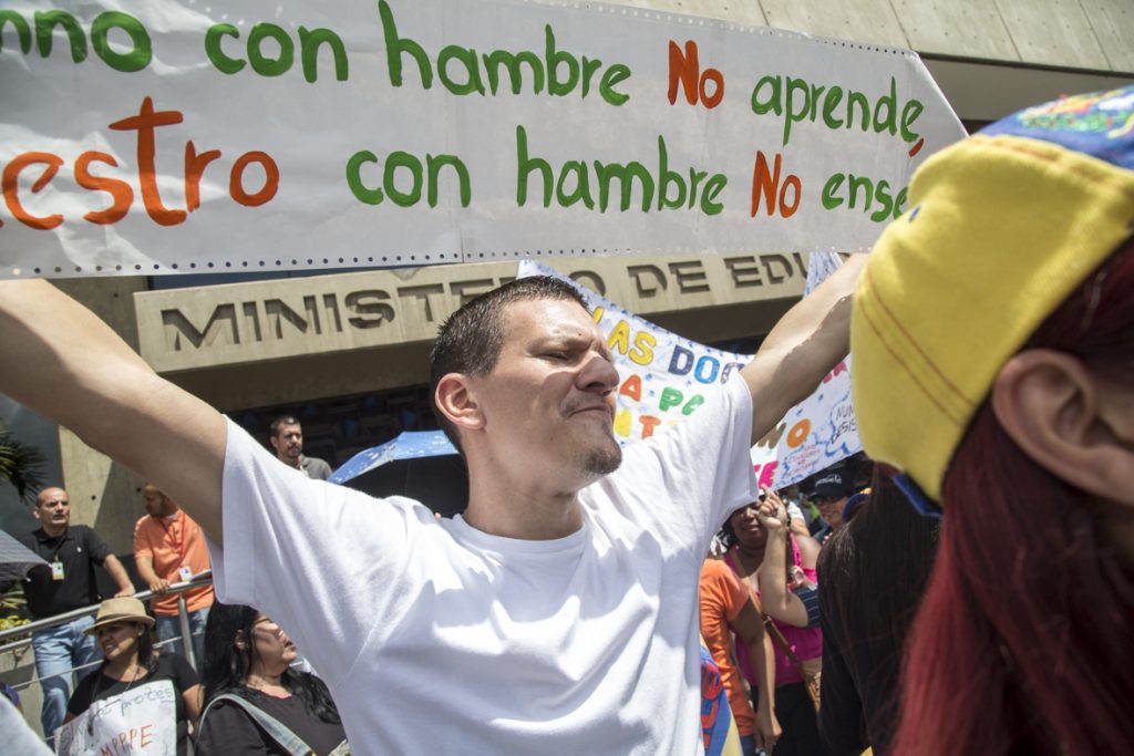 Carmen Roja, es maestra en una escuela pública de Antimano. Su motivación para salir a protestar –cosa que viene haciendo desde el 16 de septiembre–, es el bajo sueldo que recibe, que dice no alcanza para cubrir las compras de la canasta básica, además del mal estado en el que está el plantel donde trabaja. Ella tuvo que pedir la cola a otra colega para poder asistir a esta manifestación, porque asegura no tener «ni para el pasaje».