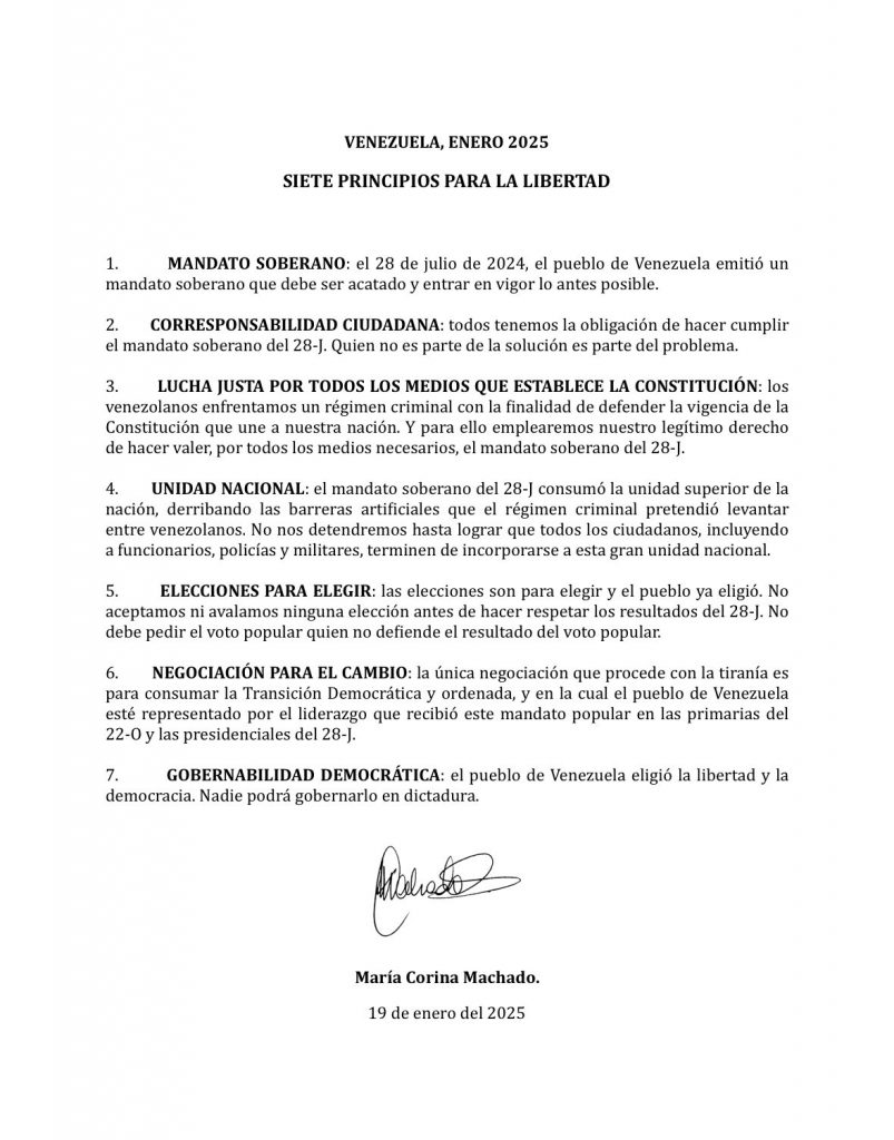 «No aceptamos ni avalamos ninguna elección antes de hacer respetar los resultados del 28-J», escribió en un documento titulado `Siete principios para la libertad´ que publicó en su Twitter.