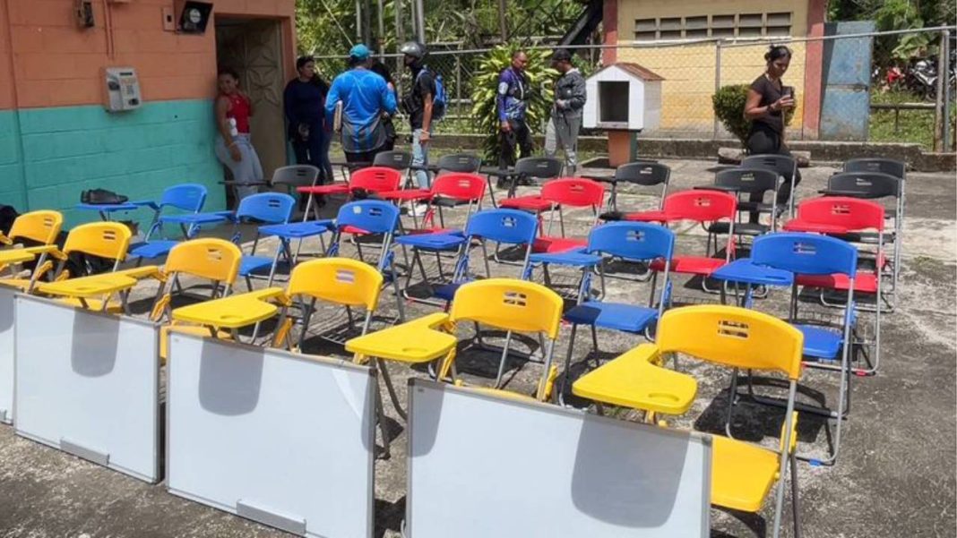 Entregaron pupitres, material educativo y de oficina, uniformes (para algunos niños), zapatos de distintas tallas y cuatro pizarras que beneficiarán a una población estudiantil de 86 niños (45 de Urba y 41 de Cupertino).