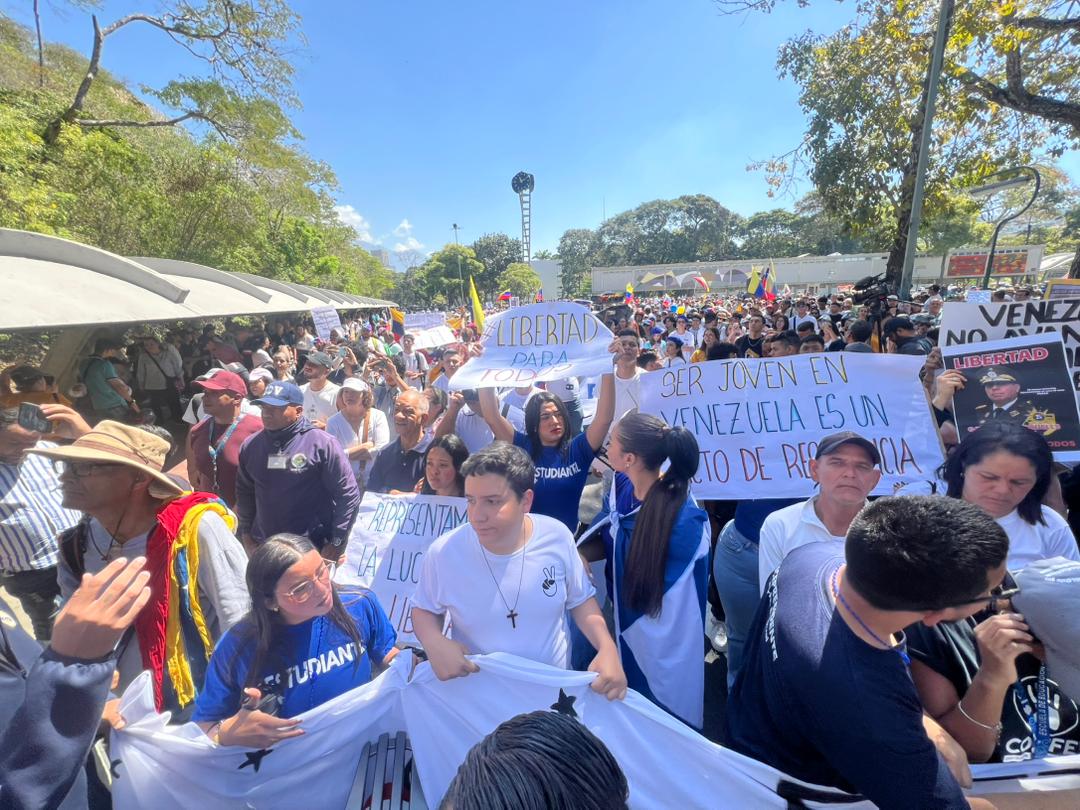 Al grito de la consigna “No tenemos miedo”, estudiantes de la UCV, sindicatos, representantes de diversos sectores del país y sociedad civil realizaron una marcha durante la mañana de este jueves para conmemorar un año más del #12Feb, pedir por la dignificación de todos los venezolanos y la liberación de todos los presos políticos que registra el Gobierno.