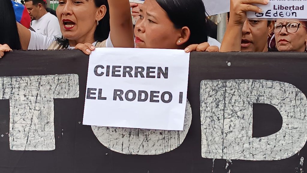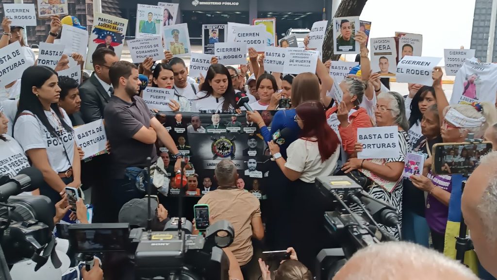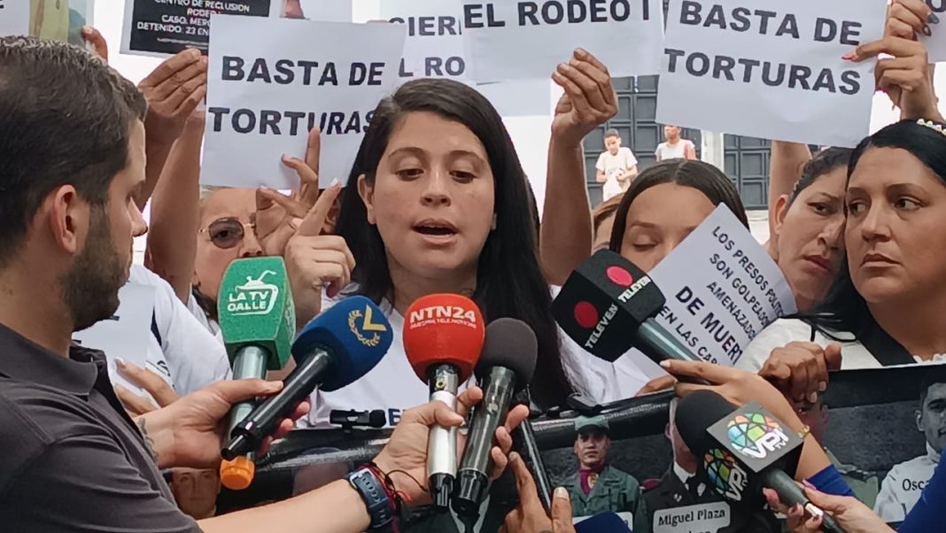 Un grupo de familiares de personas detenidas por motivos políticos acudió este miércoles a la sede del Ministerio Público para consignar un documento en el que denuncian una reciente ola de maltratos y represión en el centro penitenciario El Rodeo I. Andreina Baduel, portavoz del grupo, calificó los hechos ocurridos la semana pasada como una «arremetida de violencia institucional» que cumple siete días sin obtener una respuesta oficial veraz.