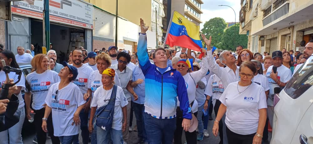 «Gustavo se queda, la casa no se entrega», remarcaron las voces en su recorrido por calles emblemáticas del casco central de Chacao, como la Páez o la Urdaneta.