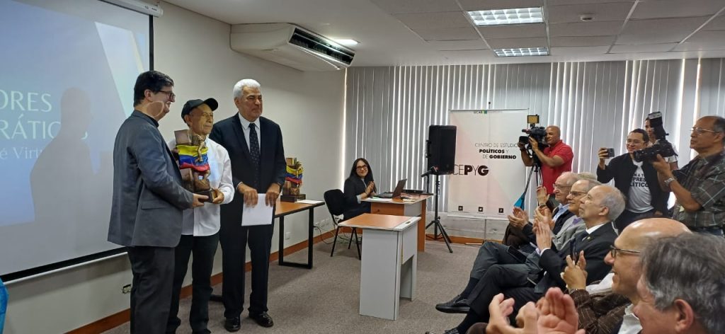 Con abrazos, fotografías, videos y mucha emoción, organizaciones y figuras recibieron este martes el Premio Valores Democráticos que entrega el Centro de Estudios Políticos y de Gobierno «José Virtuoso» de la UCAB.