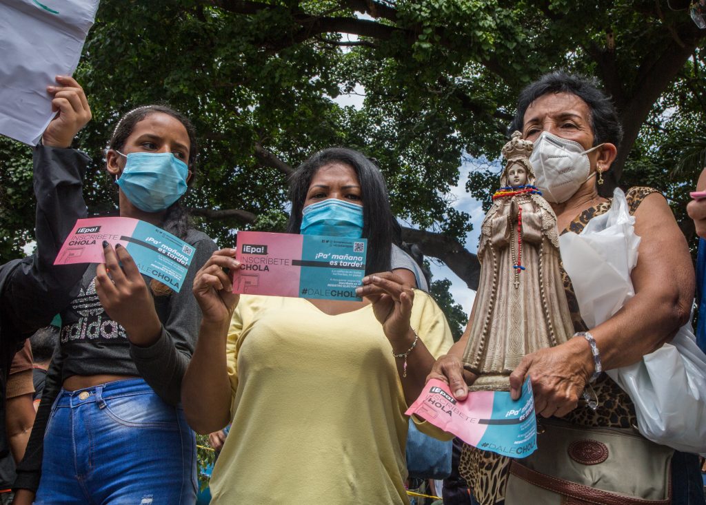 María tiene más de 50 años en el municipio Sucre. Se vino de oriente «buscando una mejor calidad de vida». Hoy, centra su esperanza en el voto. «Siempre he votado», comenta con orgullo. «Tengo la fe y la esperanza de que haya un cambio», explica María, hoy aquejada por ese dolor nacional llamado migración. Y, cada vez que hay una protesta, toma la virgen y le dice «vámonos».