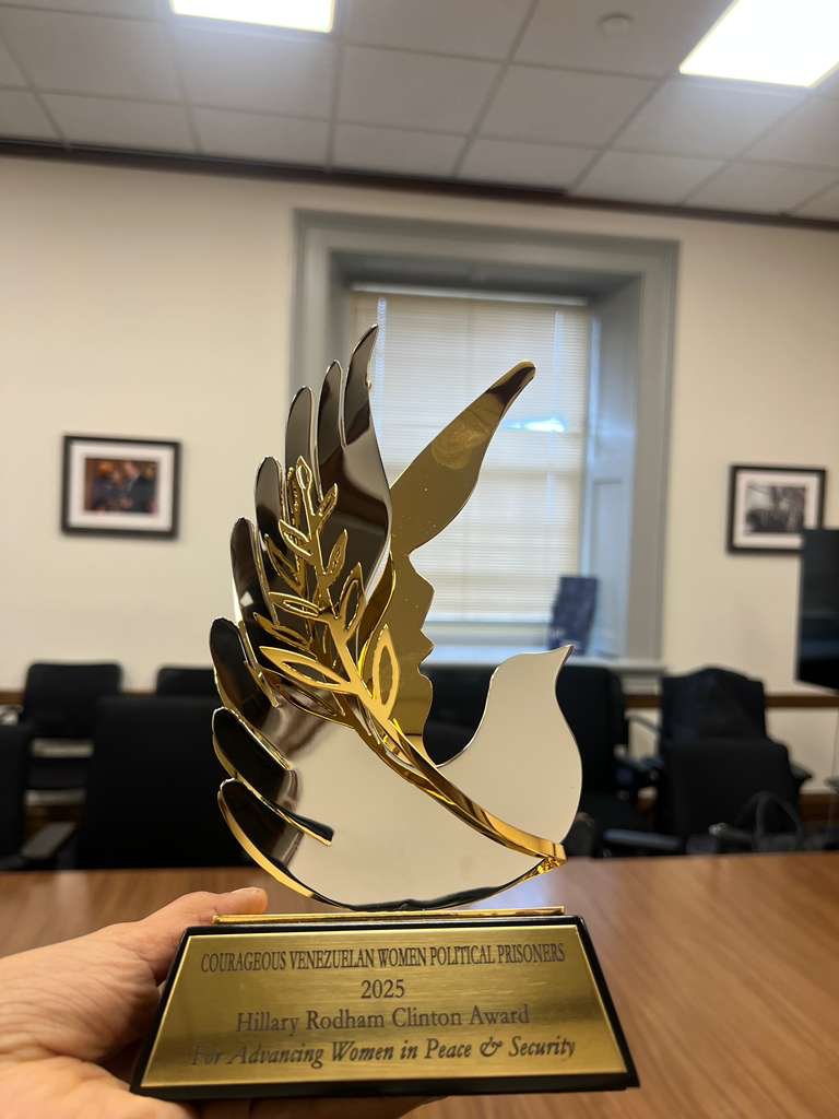 El Hillary Rodham Clinton Award es entregado anualmente por el GIWPS a mujeres que han demostrado un compromiso excepcional con la paz, la seguridad y la justicia en contextos de conflicto. En esta edición, el foco estuvo en las mujeres venezolanas que han enfrentado persecución, tortura y encarcelamiento por sus ideas.