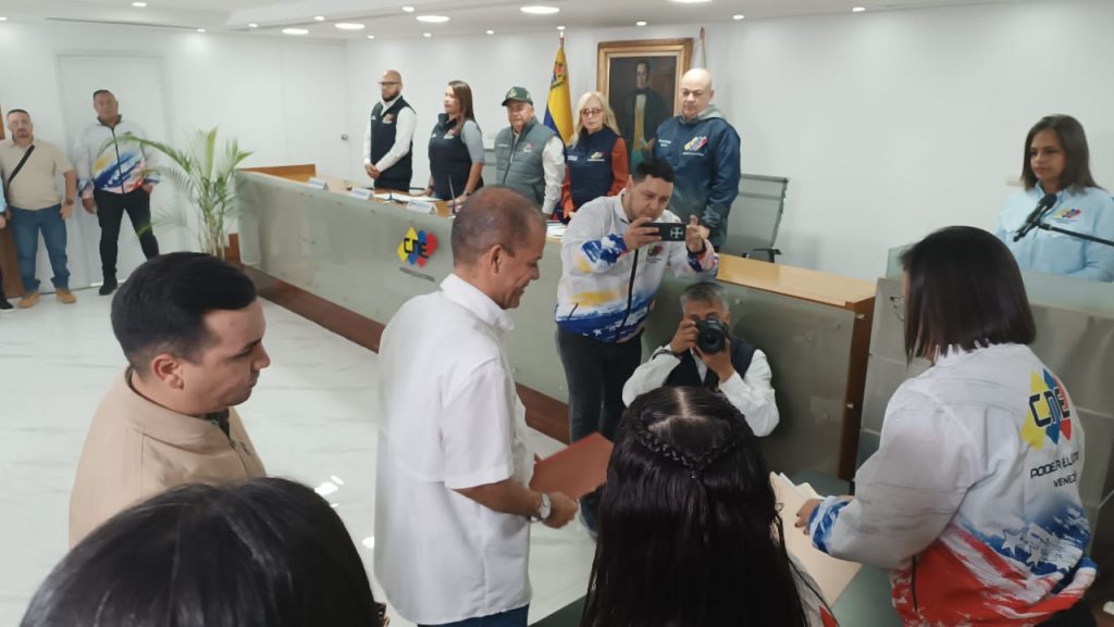 Omar Ávila, secretario general de Unidad Visión Venezuela, llevó la carpeta de postulación de los candidatos de la tolda política a las instalaciones del CNE, remarcando la importancia de participar en estos comicios para promover la democracia en el país.