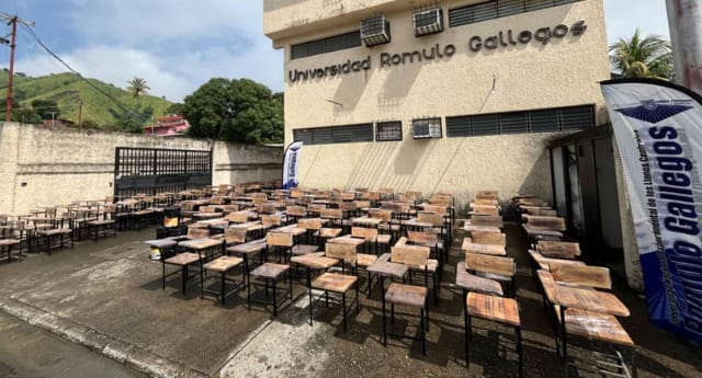 El rector de la Universidad Nacional Experimental Rómulo Gallegos (Unerg), César Augusto Gómez, entregó 150 pupitres nuevos al Centro de Estudios de los Llanos (Cellunerg) (…) «La Universidad Rómulo Gallegos continua dotando todas sus sedes».