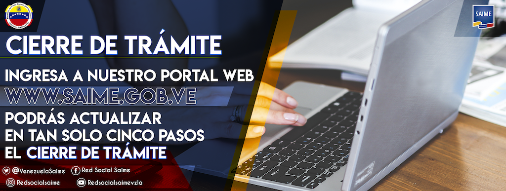 La opción del Cierre de Trámite de pasaportes y prórrogas se encuentra disponible en página web del Servicio Administrativo de Identificación, Migración y Extranjería (Saime) www.saime.gob.ve.