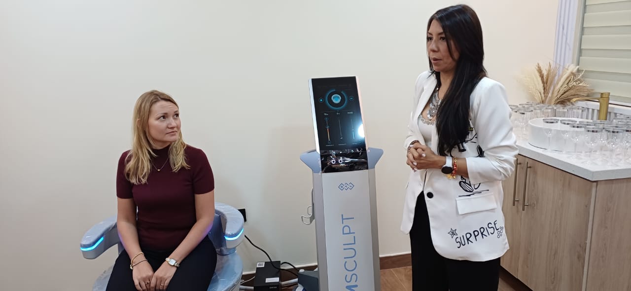 Una vez que comenzó el recorrido sala por sala, uno de los equipos concentró la atención de las mujeres: Emsella, una silla que ayuda a mejorar la incontinencia urinaria y la función sexual. Como lo detalló Kenia Santana, gerente general de BTL Venezuela, este equipo produce más de 11 mil contracciones en 28 minutos; es decir, miles de veces más contracciones que los ejercicios de Kegel. Fabiana Fernández, especialista clínica en la línea estética de BTL, detalló que la silla es, también, para hombres, y se indica -entre otras afecciones- para la disfunción eréctil y la incontinencia urinaria. La persona ni siquiera debe quitarse la ropa; basta con sentarse en la silla.