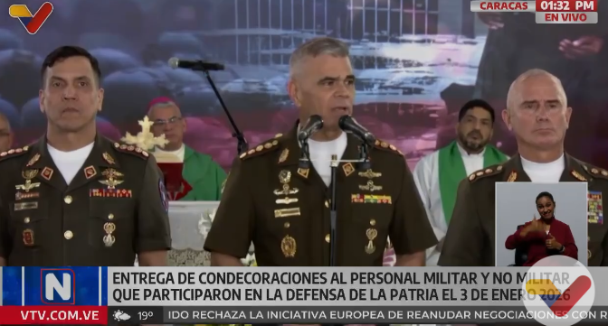 El ministro Vladimir Padrino López realizó este viernes 16 de enero la entrega de condecoraciones al personal militar y no militar que participaron en la defensa de la nación durante la intervención estadounidense que culminó con la captura del presidente Nicolás Maduro y Cilia Flores.
