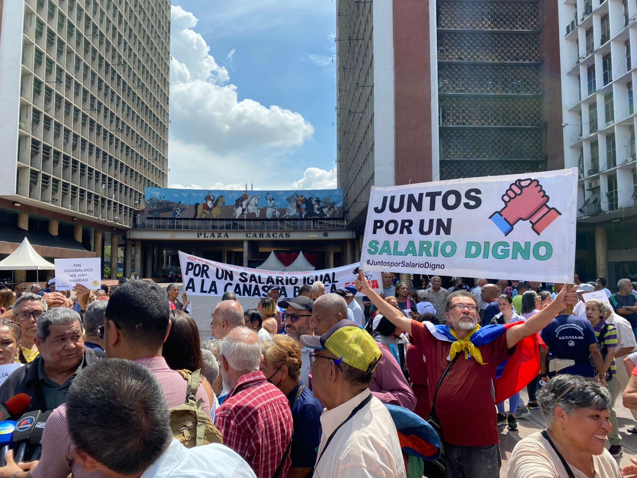 En la Plaza Caracas del centro de la ciudad capital se escuchó el coro «y vengan compañeros que se está levantando el movimiento obrero» precisamente reclamando mejoras salariales y condiciones de trabajo dignas al gobierno de quien se hace llamar «presidente obrero», Nicolás Maduro