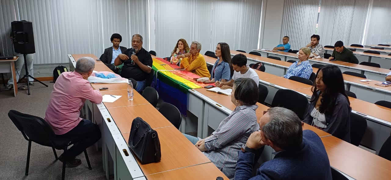 El Centro decidió seguir adelante con la actividad. Como lo comentó el director de la institución, el profesor Benigno Alarcón, todo el trabajo que realizan de investigación y reflexión acerca del conflicto y la negociación debería dar pie a un manejo inclusivo y respetuoso de las diferencias en torno a un tema polémico. Así que, a las 5:15 pm de este jueves, y con banderas color arcoíris frente a sus ojos (las que colocaron los activistas que acudieron a la actividad), la directora de comunicaciones del Centro, Sofía Torres, dio inicio a la discusión y Fernández comenzó su intervención.